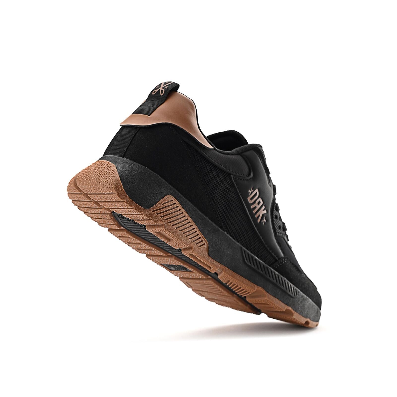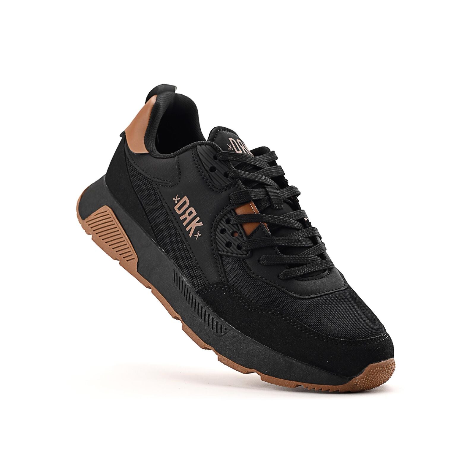 A DRK Rusty alacsony szárú utcai cipő a letisztult dizájnt és a mindennapi komfortot ötvözi. A "Fekete/Barna" színkombináció elegáns, mégis sportos megjelenést biztosít, így ideális választás utcai viselethez vagy hétvégi programokhoz.