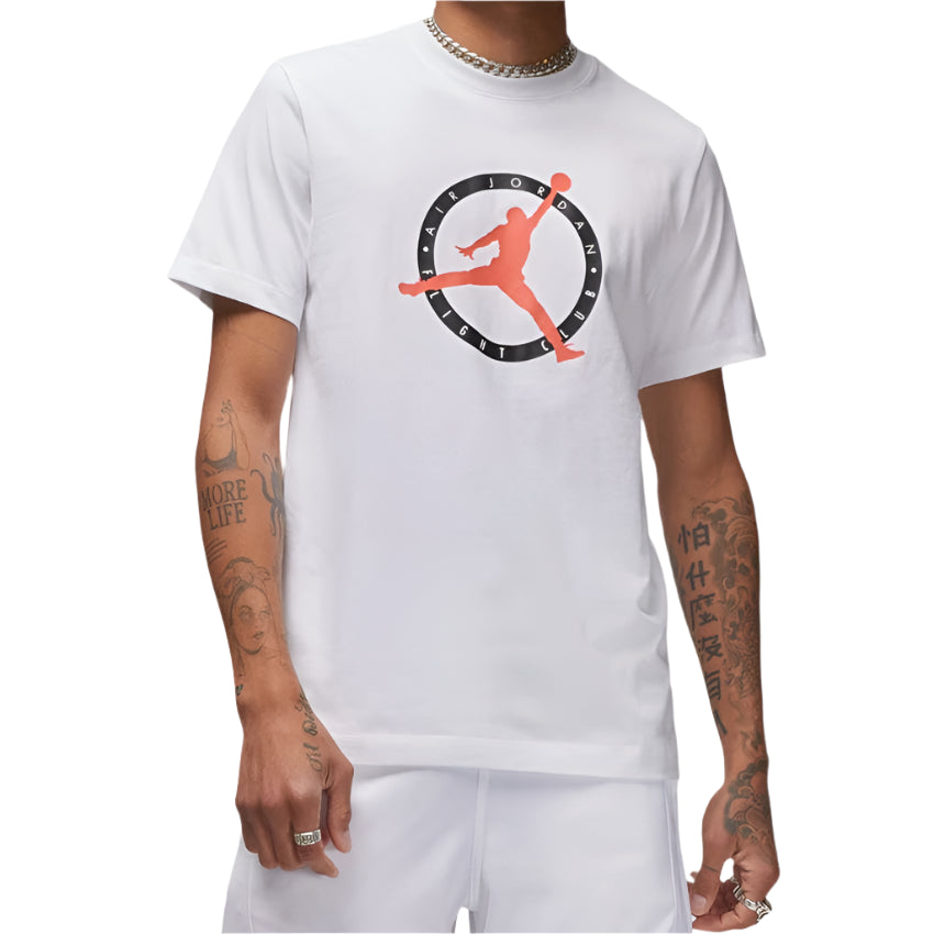 A pólót a Flight MVP grafika díszíti, amely a Jordan márka legendás örökségét idézi meg, míg a fehér alapszín kiemeli a dizájnt és könnyen kombinálható más ruhadarabokkal.
