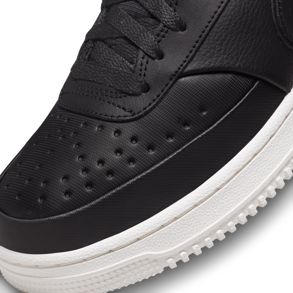 A Nike Court Vision Mid Winter "Fekete" a klasszikus kosárlabda ihlette dizájnt ötvözi a téli szezon kihívásainak megfelelő funkcionalitással. Ez a modell azoknak készült, akik szeretnék megőrizni a sportos, utcai stílust a hidegebb hónapokban is.