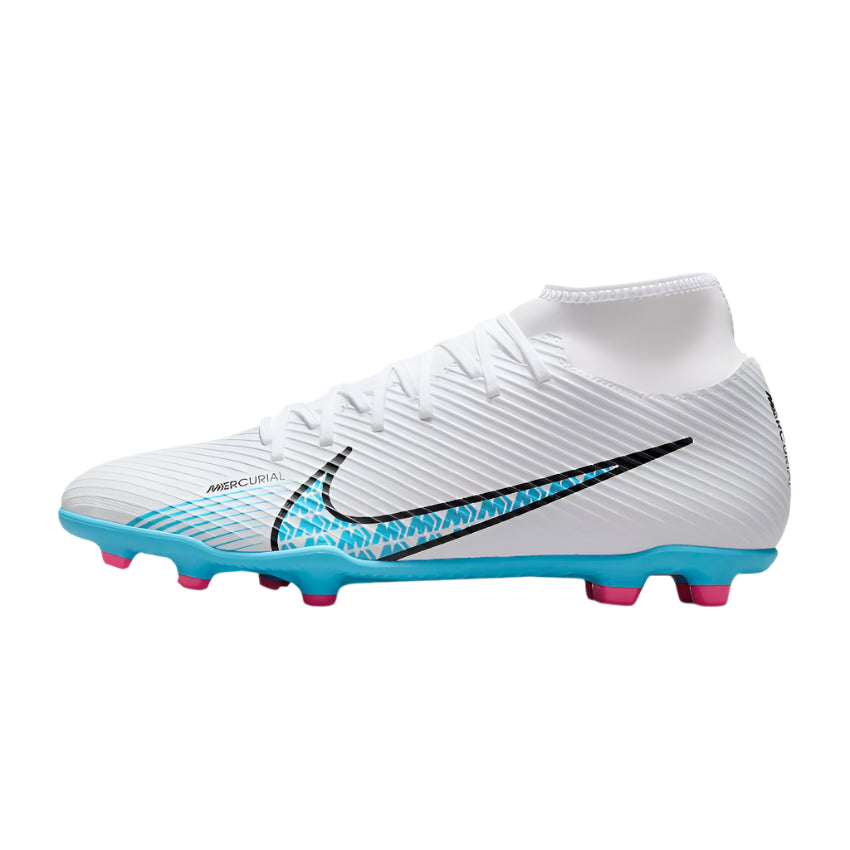 A Nike JR Superfly 9 Club FG/MG "Fehér" Fiú Focicipő a tökéletes választás minden fiatal focista számára, aki kiemelkedő teljesítményre vágyik a pályán. A könnyű, de tartós anyagok és a fejlett talp kialakítás optimális tapadást biztosítanak, így a dinamikus fehér szín letisztult, mégis figyelemfelkeltő megjelenést kölcsönöz a cipőnek.