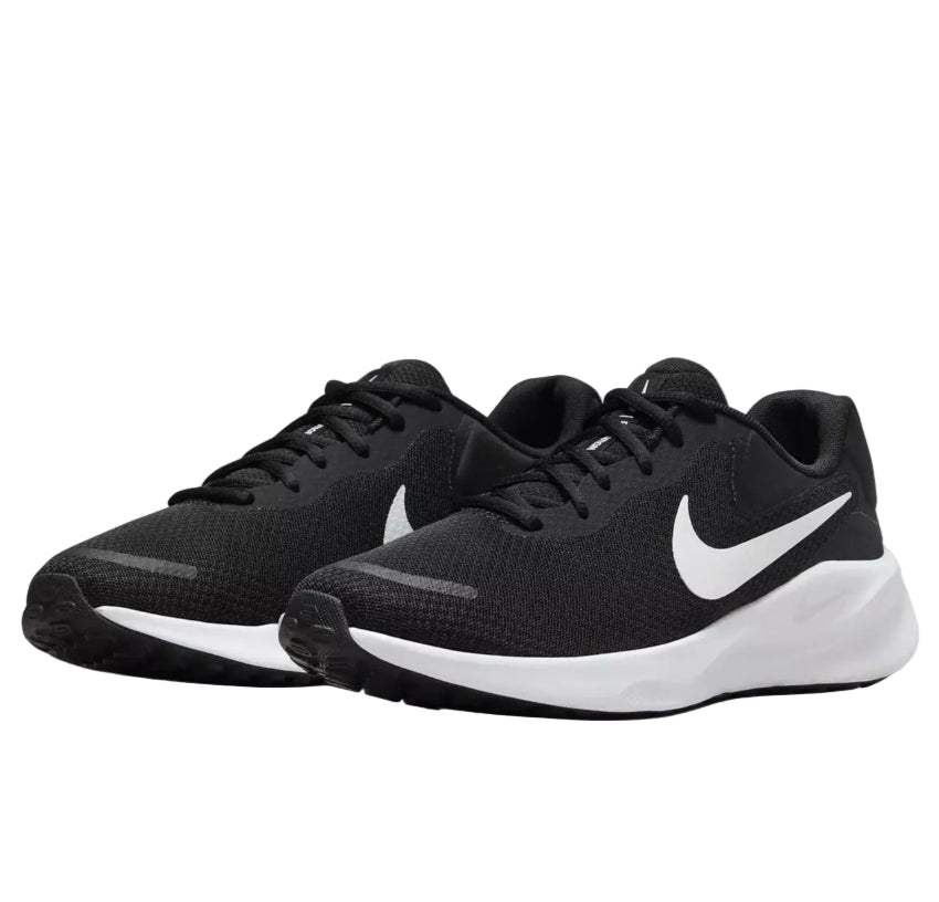 A Nike Revolution 7 a népszerű futócipő-sorozat legújabb verziója, amely a mindennapi futásokhoz és aktív életmódhoz készült. A lélegző mesh felsőrész optimális szellőzést biztosít, míg a puha habszivacs középtalp kényelmes párnázást nyújt minden lépésnél. A fekete-fehér színkombináció letisztult, sportos megjelenést ad.