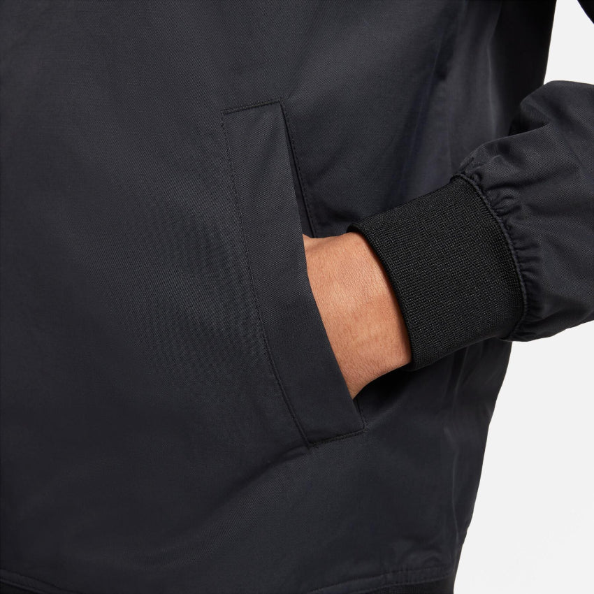 A Nike Sportswear Essentials béleletlen, szőtt bomberdzseki letisztult dizájnjával és könnyű anyagával tökéletes választás a mindennapokra. A klasszikus bomber fazon modern részletekkel párosul, a fekete alapot pedig a fehér logó és díszítések emelik ki. Könnyen kombinálható, így ideális utcai viselethez vagy réteges öltözködéshez.